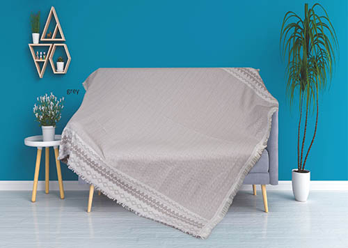 Κουβέρτα-ριχτάρι Σχ. Ethnic super soft με ζακάρ σχέδιο 100% πολ. - 150x220cm, Grey